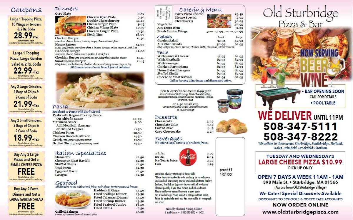 Welcome to Old Sturbridge Pizza & Restaurant, a charming eatery located at 392 Main St, Sturbridge, MA. This culinary gem has gained rave reviews for its delectable offerings that go beyond just pizza. Customers like Chris Makowski praise the fantastic pizza and mouthwatering mozzarella sticks, highlighting the delightful pizza sauce that truly elevates the experience.